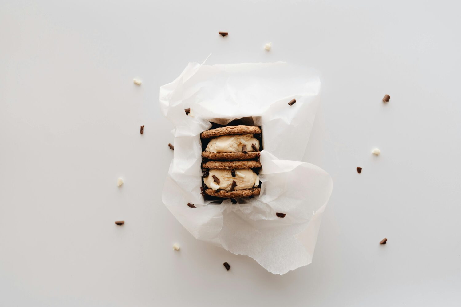 3. Coge una cookie, rellena con tu helado favorito y pon otro cookie de tapa.