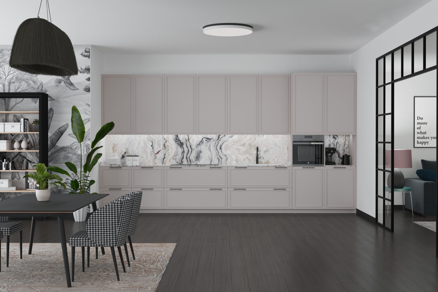 Las puertas enmarcadas son aquellas que presentan un marco alrededor del panel central, una característica que añade un toque tradicional o clásico al diseño. Este detalle enmarcado puede variar en grosor y estilo, lo que permite personalizar la cocina para adaptarse a diferentes preferencias estéticas. Las cocinas enmarcadas, el resultado es una fusión perfecta entre lo moderno y lo clásico.